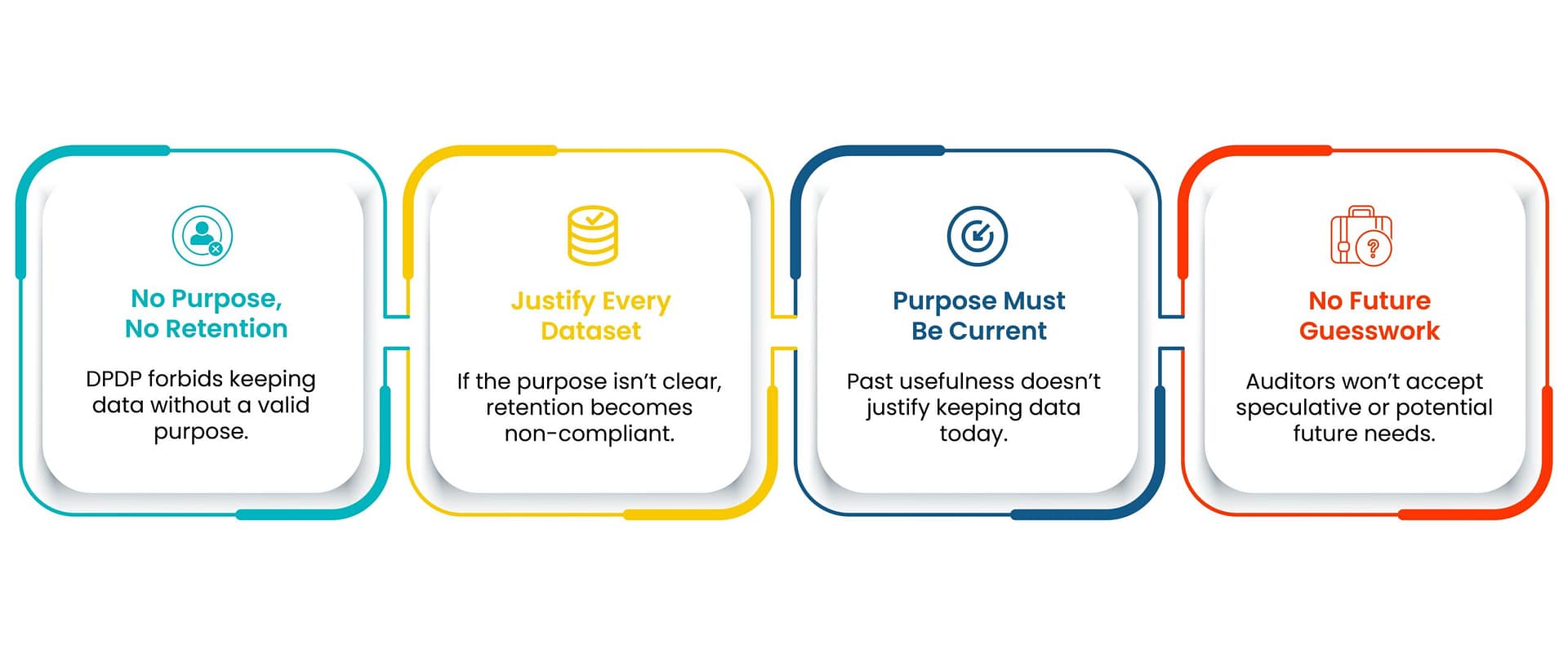 DPDP requires that personal data be retained only for as long as necessary to fulfil the purpose for which it was collected. Once that purpose is achieved, the data must be deleted or anonymised.