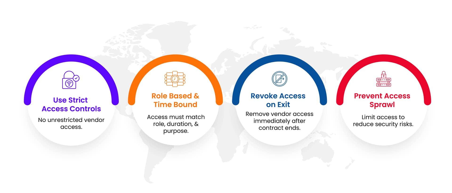 Vendors should not have unrestricted access to data. Access should be role based, time bound, and purpose limited.