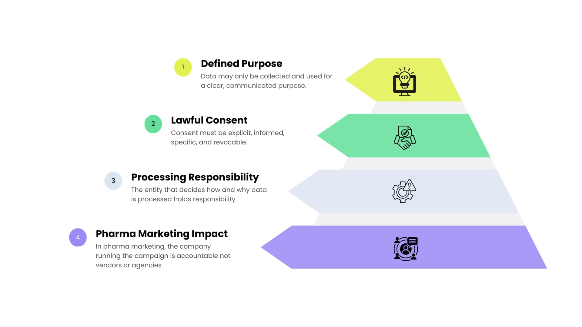 For pharma marketing, this means the company running the campaign is accountable, not the CRM vendor, not the digital agency, and not the data supplier.